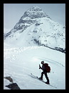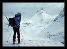 1/1983. Tuc de Lluçà des de Cavallers, amb esquís, per la bretxa entre el Lluçà i Travessani