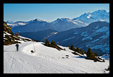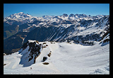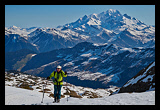 4/2014. Esquí de primavera al Beaufortain. La Legette du Grand Mont (2.366 m) fins la carena (cota aprox. 2.240 m). Le Grand Mont (2.686 m) des de les Envers. Roche Parstire (2.108 m) del del Col du Pré.